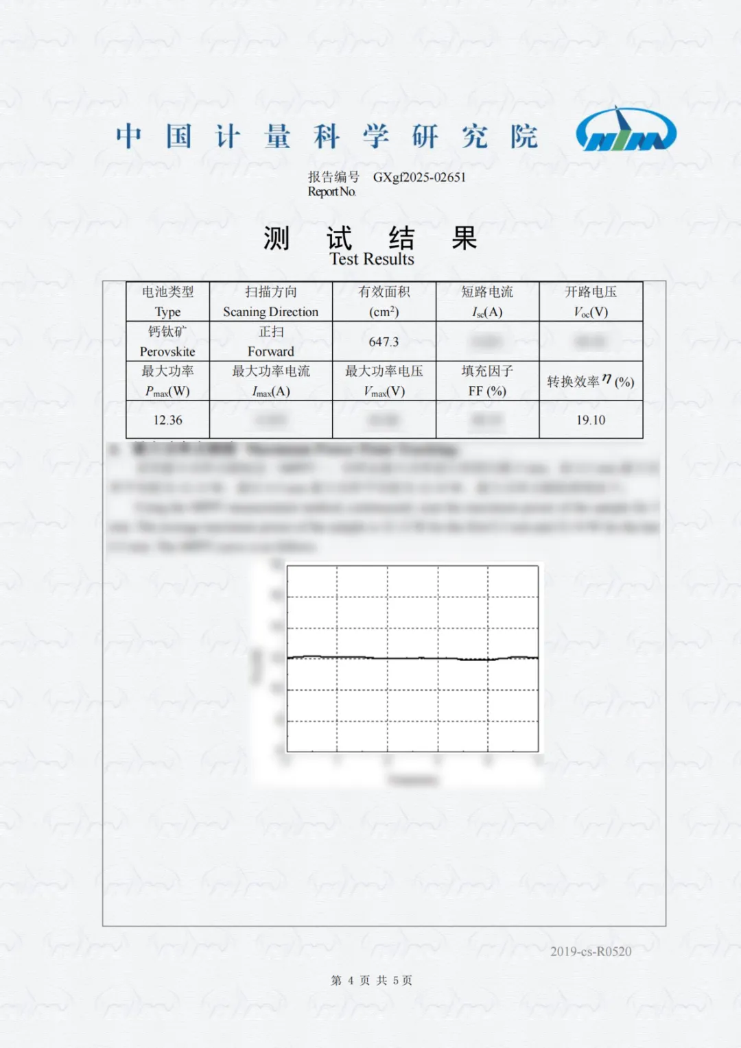 晶皓新能源再度改写行业标杆 —— 其研发的30cm*30cm大尺寸超薄柔性钙钛矿太阳能电池,经中国计量科学研究院权威认证,光电转化效率达到 19.10%,成功刷新该领域的纪录,成为全球柔性钙钛矿电池技术突破的重要里程碑。